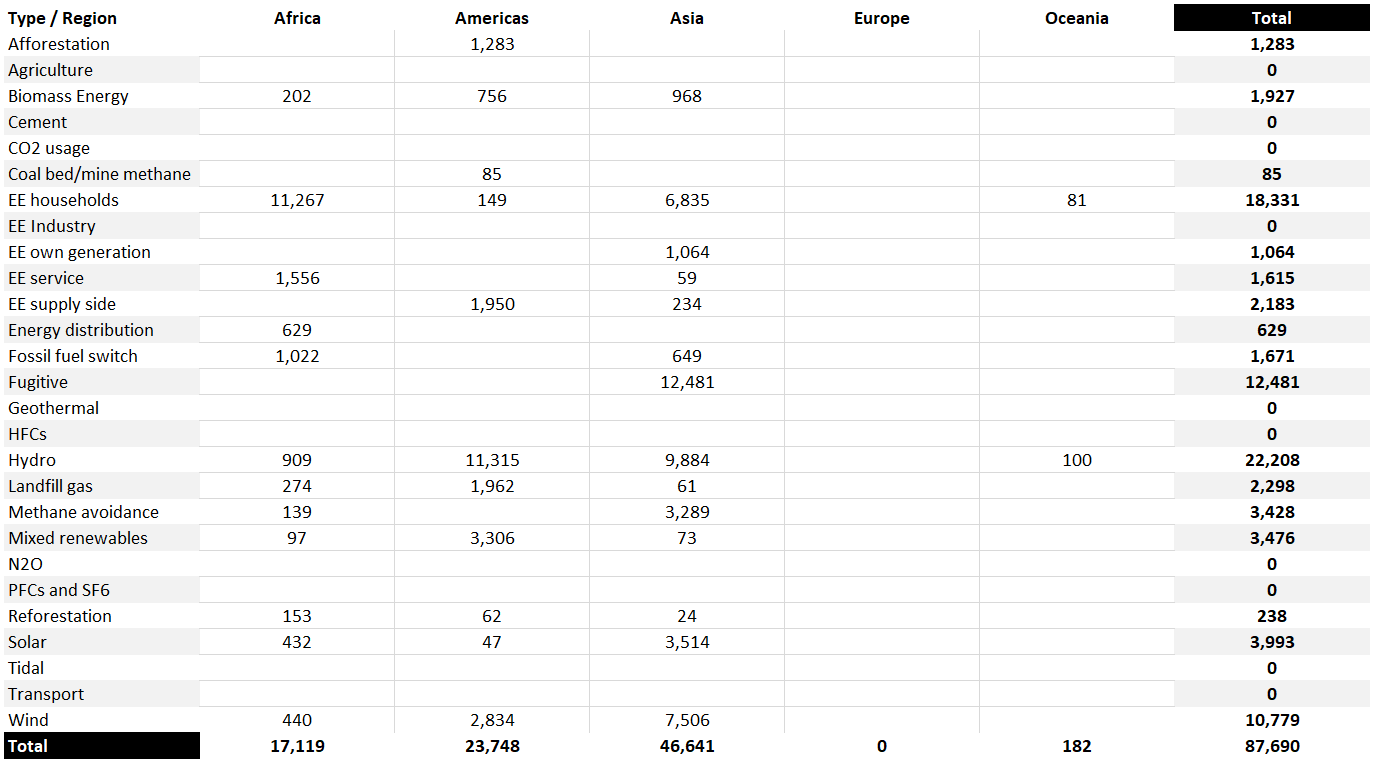 The graphs and tables below give an overview the CDM’s potential impact on arrangements under the Paris Agreement (i.e., NDCs and Article 6). For further analysis, the Excel database is freely available and the tables in the Analysis sheet can be easily adapted to the user’s needs.
